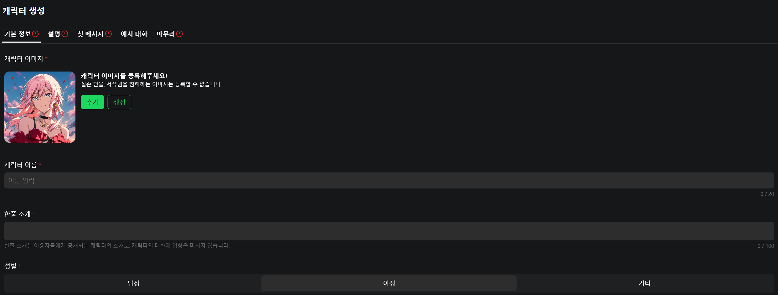 ✔️ 말투, 성격, 대사까지 설정할 수 있고