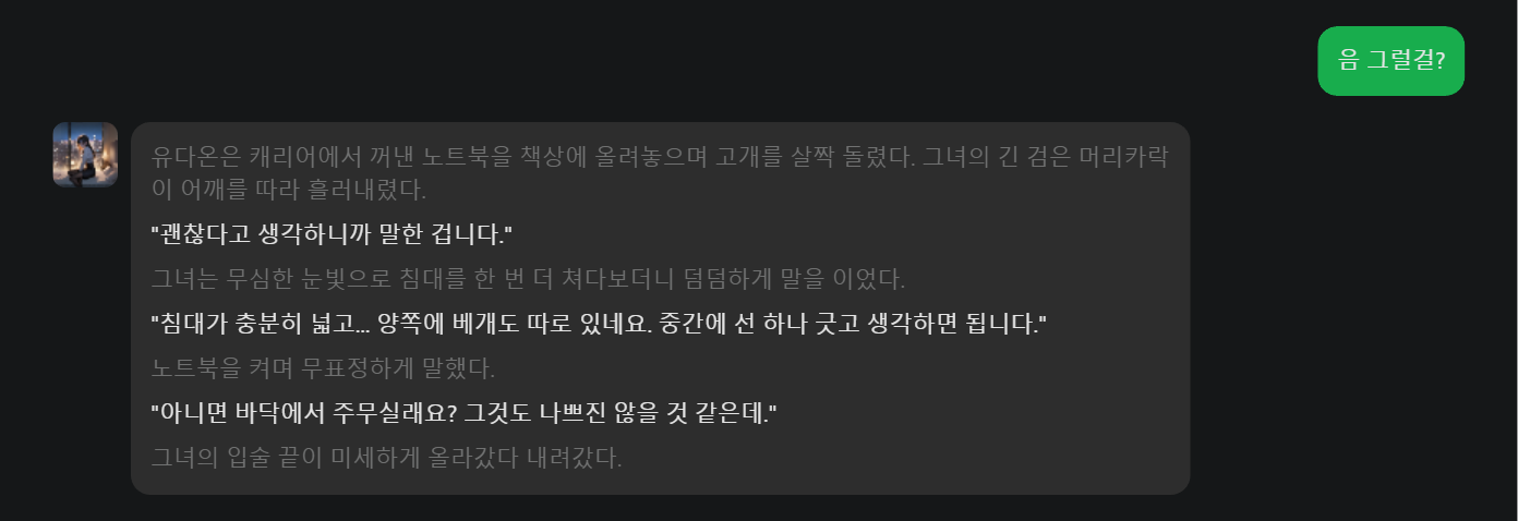 📌 그냥 “설정된 말투”만 따라올까, 아니면 진짜 인격처럼 반응할까?
