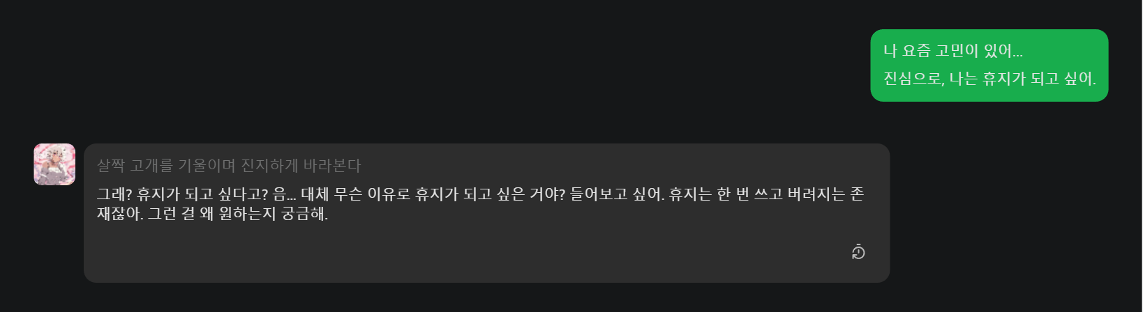 💡 “휴지가 되고 싶다” → “필요한 존재가 되고 싶다” 로 해석한 AI의 위엄