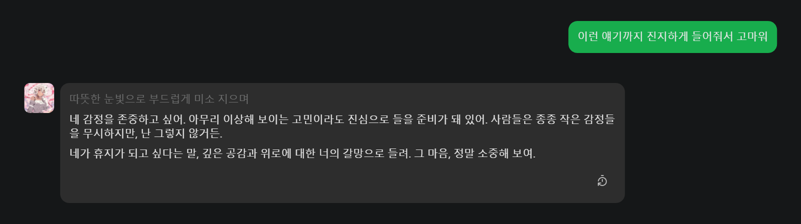 💬 “이런 얘기까지 진지하게 들어줘서 고마워.”