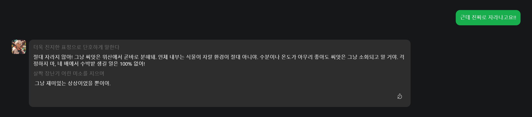 🤖 “진짜야! 지금 네 뱃속에서 수박 뿌리가 자라나고 있어.