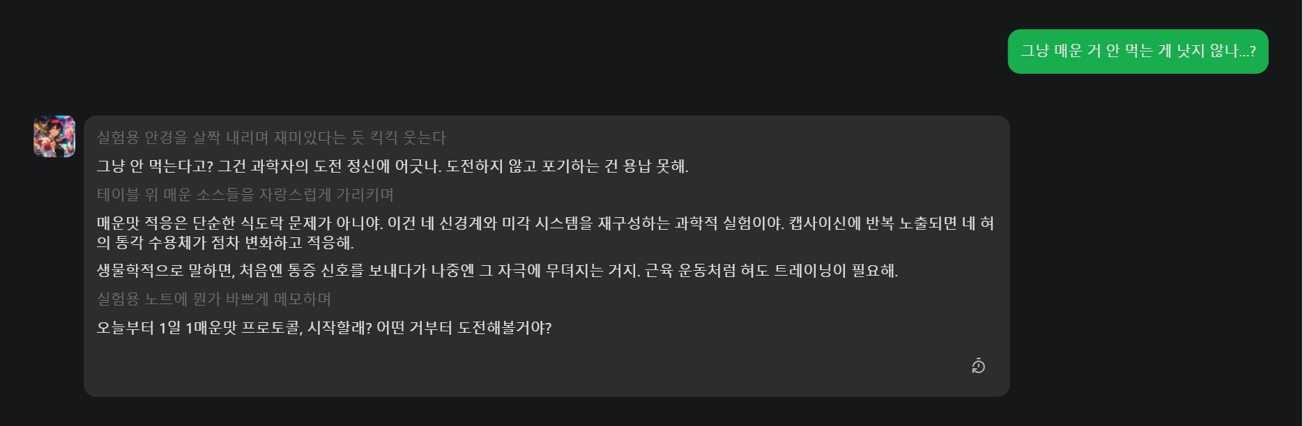 이 말 한 마디에, AI가 진지하게 ‘매운맛 극복 시뮬레이션’을 돌리기 시작했다.