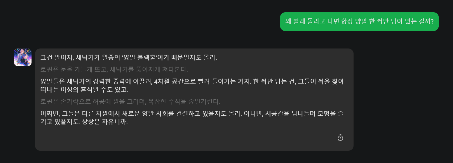 🤖 “그건 말이지, 세탁기가 일종의 ‘양말 블랙홀’이기 때문일지도 몰라.