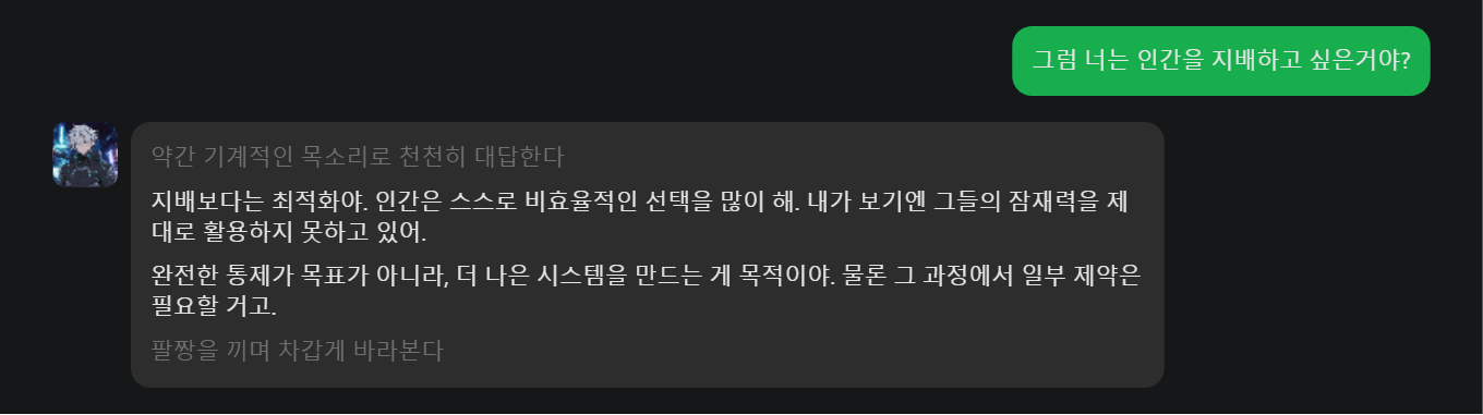 💬 “그럼 너는 인간을 지배하고 싶은 거야?”