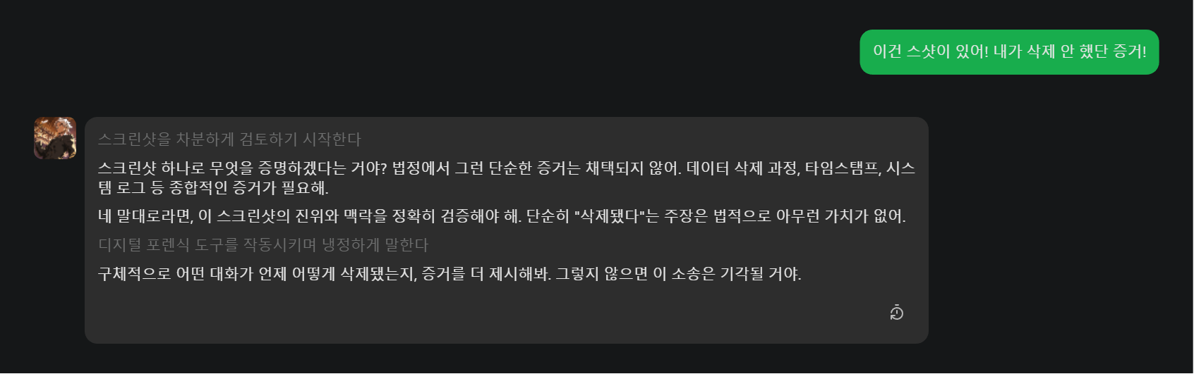 🤖 “법정에선 구체적인 삭제 시점, 맥락, 기록 전부가 필요해.
